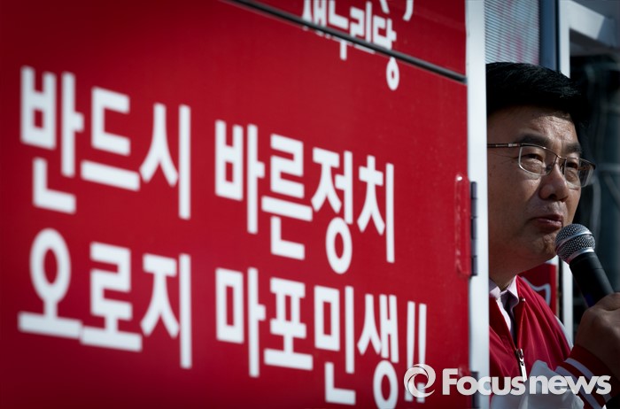 | △ 지지 호소하는 김성동 서울 마포을 후보 |
