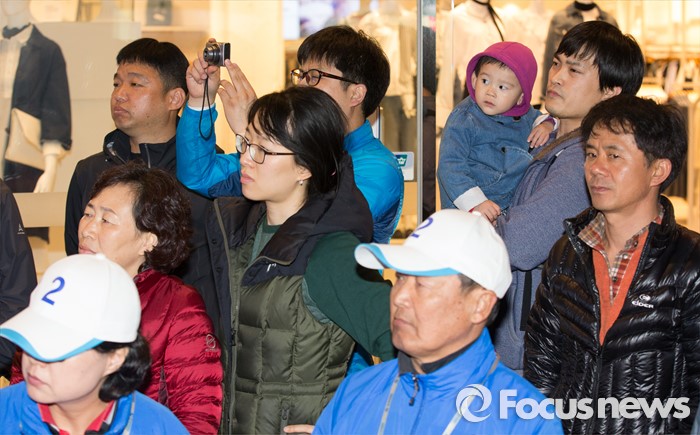 (청주=포커스뉴스) 7일 오후 충북 청주 상당구 성안길에서 김종민 더불어민주당 대표가 지원유세를 나온 가운데 시민들이 유세를 바라보고 있다.