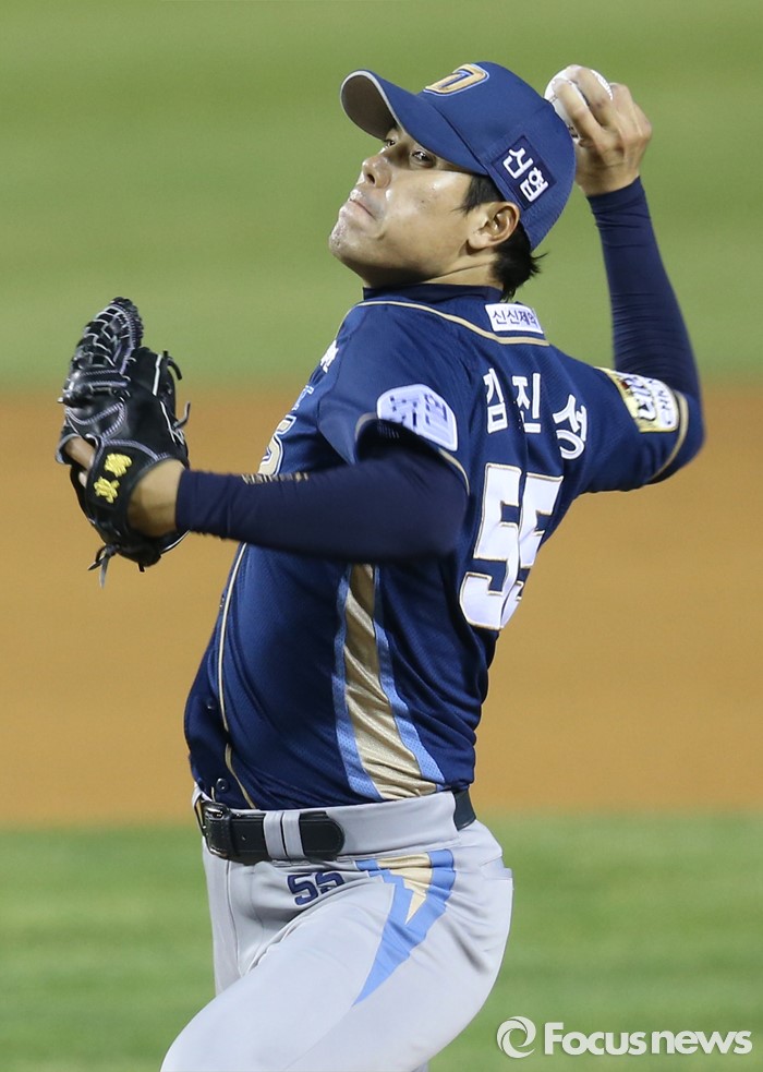 (서울=포커스뉴스) 7일 서울 잠실구장에서 열린 2016 프로야구 NC-두산 경기에서 NC 투수 김진성이 9회 등판해 투구하고 있다.
