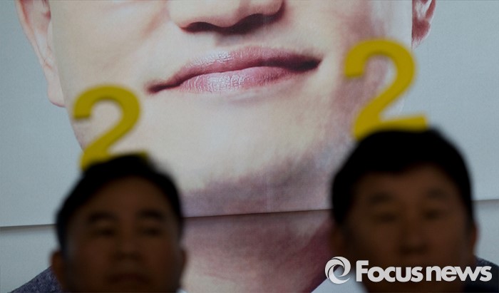 (서울=포커스뉴스) 8일 오전 서울 은평구 응암로 박주민 은평구갑 후보 사무실에서 열린 중앙선거대책위원회 회의에 참석한 관계자들이 2번 머리띠를 착용하고 있다.