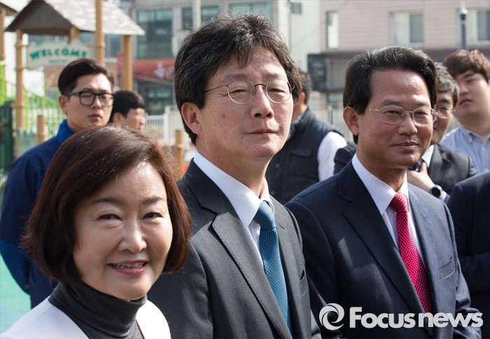 (대구=포커스뉴스) 무소속 유승민(가운데), 권은희(왼쪽), 류성걸 후보가 8일 오전 대구 북구 산격3동 주민센터에 마련된 사전투표소에서 사전투표를 마치고 기자회견을 하고 있다.