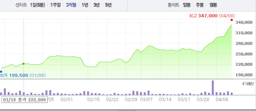 이어 “선진국 시장의 진출 가능성을 반영했다”며 “목표주가를 30만원에서 40만원으로 상향 조정했다”고 덧붙였다.주가흐름<사진출처=네이버캡쳐>