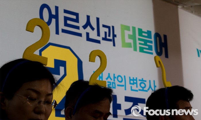 (서울=포커스뉴스) 8일 오전 서울 은평구 응암로 박주민 은평구갑 후보 사무실에서 열린 중앙선거대책위원회 회의에 참석한 관계자들이 2번 머리띠를 착용하고 있다.