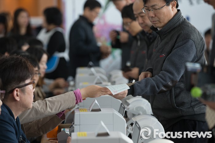 (서울=포커스뉴스) 4.13총선 사전투표 첫째날인 8일 오전 서울 용산구 서울역에 설치된 남영동 사전투표소에서 시민들이 투표를 하고 있다. 사전투표는 4.8~4.9일까지 진행된다.