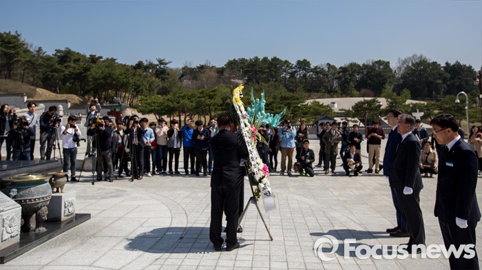 | △ 헌화하는 문재인 전 대표-김홍걸 위원장 |