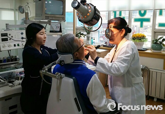 (인천=포커스뉴스) 김종인 더불어민주당 비대위 대표 겸 선대위원장이 8일 오전 인천시 지원유세 도중 부평역의 한 이비인후과에서 목 진료를 받고 있다. <사진제공=더불어민주당>