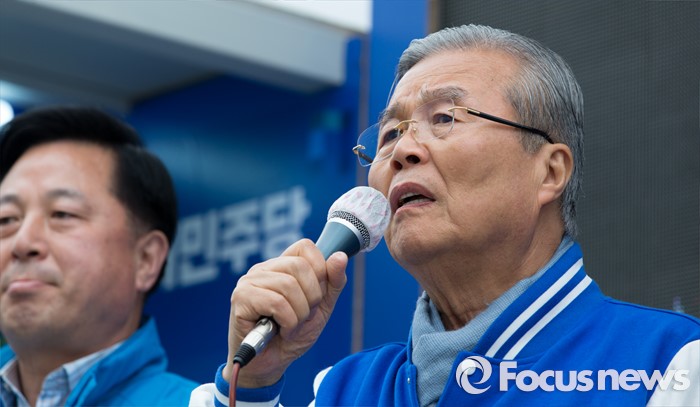 (김포=포커스뉴스) 김종인 더불어민주당 비대위 대표 겸 선대위원장이 8일 오후 경기 김포 장기사거리에서 김두관 김포시갑 후보와 정하영 김포시을 후보 합동지원유세를 하고 있다.