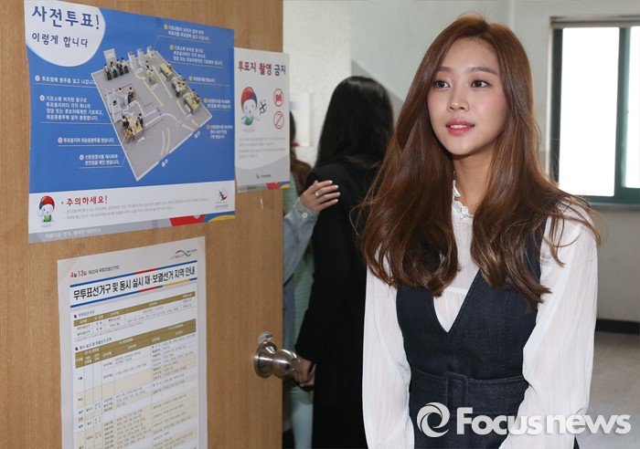 (서울=포커스뉴스) 20대 총선을 닷새 앞두고 사전투표가 이틀동안 실시되는 8일 오후 서울 강남구 청담동주민센터에 마련된 사전투표소에서 배우 조보아가 이동하고 있다.