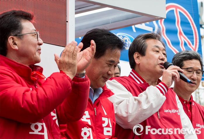 (김포=포커스뉴스) 8일 오후 경기 김포시 사우동 인근에서 김동식 새누리당 김포갑, 홍철호 김포을 후보 합동지원유세에 나선 김무성 대표가 유권자들의 지지를 호소하고 있다.