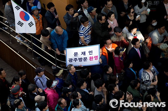 (광주=포커스뉴스) 문재인 더불어민주당 전 대표의 기자회견이 예정된 8일 오후 광주광역시 동구 충장로에서 한 지지자가 문 전 대표를 환영하는 피켓을 들고 있다.