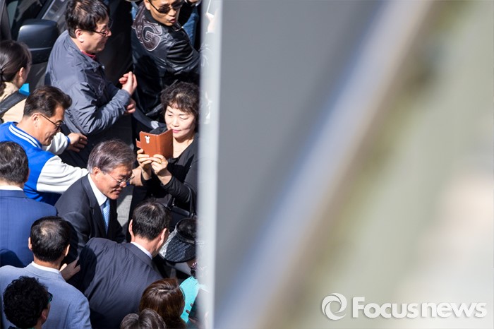 (광주=포커스뉴스) 문재인 더불어민주당 전 대표가 8일 오후 광주광역시 동구 충장로에서 기자회견을 열고 '광주시민께 드리는 글'을 발표한 뒤 지지자들과 악수 하고 있다. 이날 문 전 대표는 "호남이 자신에 대한 지지를 거두겠다면 미련없이 정치 일선에서 물러나고 대선에도 도전하지 않겠다고" 밝혔다.