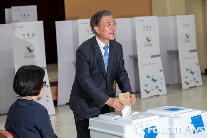 (광주=포커스뉴스) 문재인 더불어민주당 전 대표가 8일 오후 광주광역시 북구청에 마련된 사전투표소에서 투표를 하고 있다.