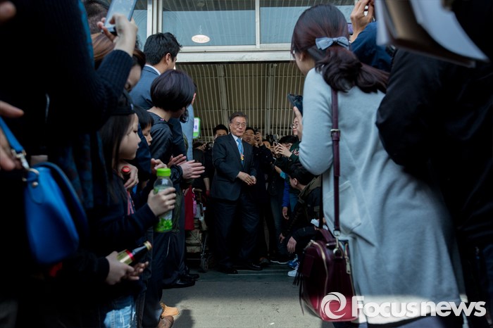 (광주=포커스뉴스) 문재인 더불어민주당 전 대표가 8일 오후 광주광역시 광산구 월곡시장을 방문해 지지자들과 인사 하고 있다.