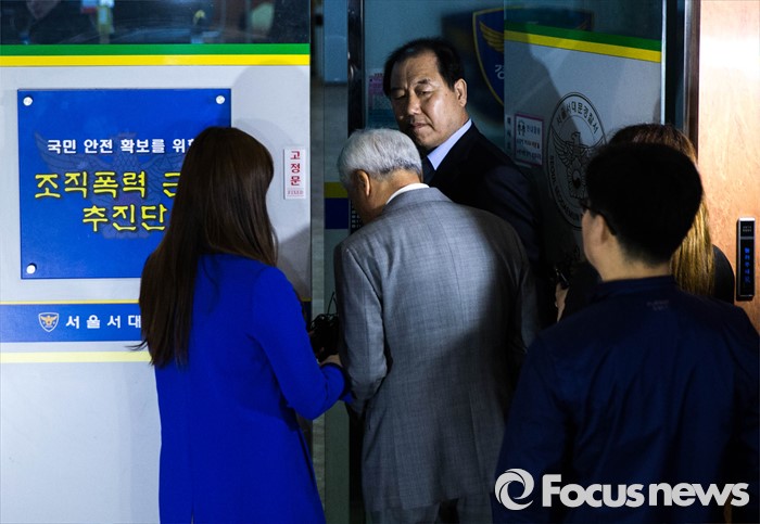 (서울=포커스뉴스) 정우현 MPK그룹 회장이 경찰 조사를 받기 위해 9일 오전 서울 서대문경찰서에 출석, 조사를 받기 위해 형사과로 들어서고 있다. '미스터피자'를 운영하는 MPK 그룹의 정 회장은 지난 2일 서대문구의 한 건물 경비원 황모(58)씨의 뺨을 때린 혐의를 받고 있다.