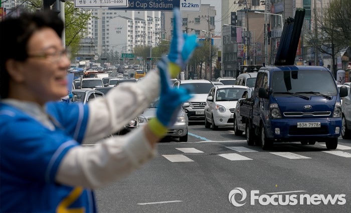 (대전=포커스뉴스) 9일 오후 대전 서구 도마네거리에서 박병석 더불어민주당 대전서구갑 후보의 선거운동원이 지지를 호소하고 있다.