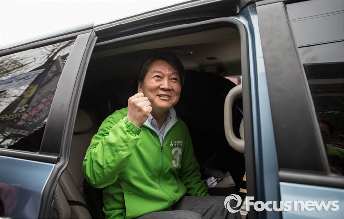 (수원=포커스뉴스) 안철수 국민의당 대표가 9일 오후 수원시 장안구 수원종합운동장에서 열린 국민의당 합동유세에 참석, 후보자들과 함께하는 유세가 끝난 후 차량에 오르며 파이팅을 외치고 있다.