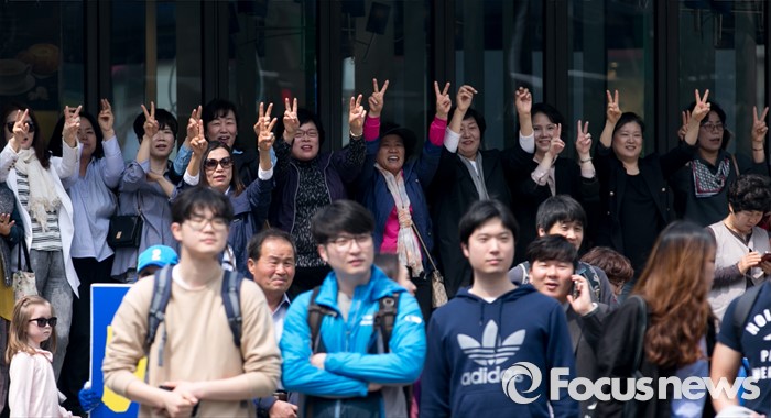 (대전=포커스뉴스) 9일 오후 대전 갤러리아백화점 타임월드점 앞에서 시민 및 지지자들이 더불어민주당 대전 서구 합동유세를 지켜보고 있다.