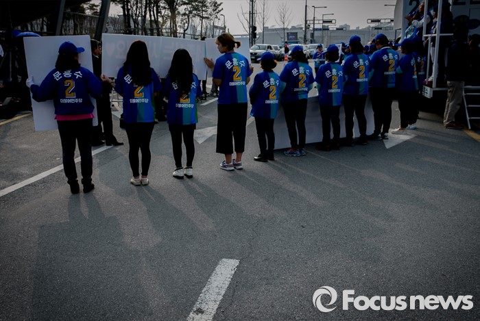 (세종=포커스뉴스) 9일 오후 세종시 국립세종도서관 앞에서 문흥수 더불어민주당 세종시 후보의 선거운동원들이 피켓을 들고 지지를 호소하고 있다.