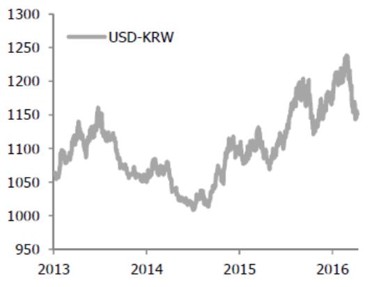 이 경우 달러화 대비 원화 가치는 글로벌 경제둔화 우려에 하락할 확률이 높다. 특히 미국의 경제지표에 대해서 시장은 긍정적인 예상을 내놓고 있어서다. 최근 미 연방준비제도(연준) 위원들이 금리 인상에 대해 다소 신중한 발언을 내놨다 하더라도 '지표에 따른 금리 결정(data-dependent)'을 강조해왔기 때문에 금리 인상 기대감 인상→달러화 가치 강세로 갈 가능성이 상존한다.