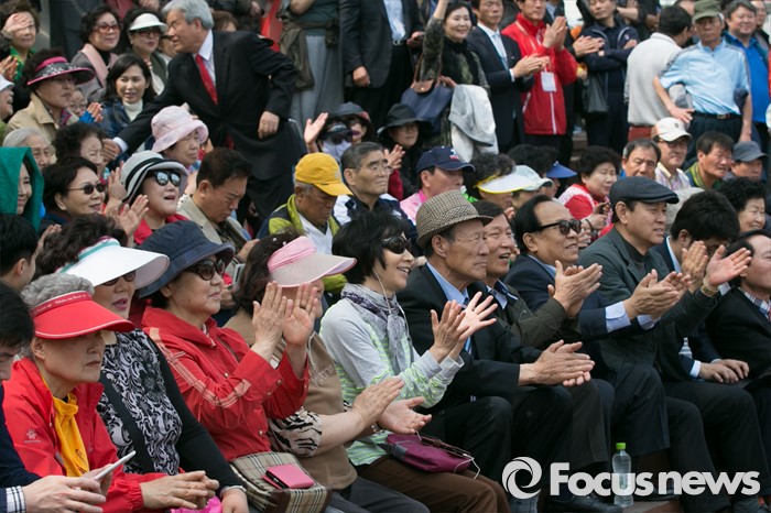 (서울=포커스뉴스) 10일 오전 서울 송파구 성내천 물빛광장에서 시민들이 김을동 새누리당 송파병 후보 유세를 보고 있다.