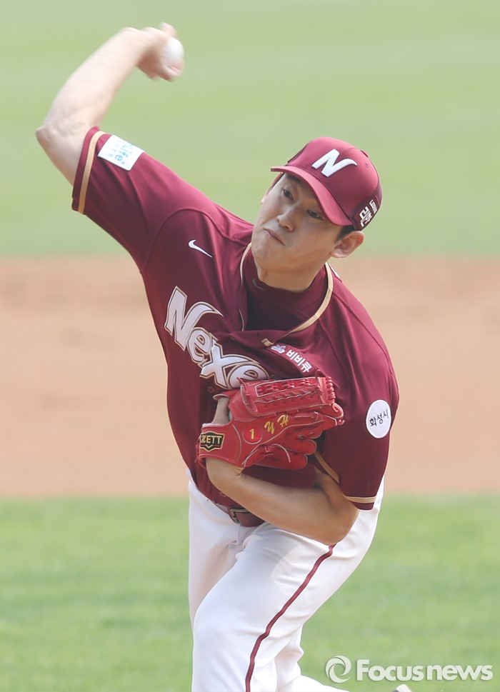 (서울=포커스뉴스) 10일 서울 잠실구장에서 열린 2016 프로야구 넥센-두산 경기에서 1회말 넥센 선발투수 양훈이 투구하고 있다.