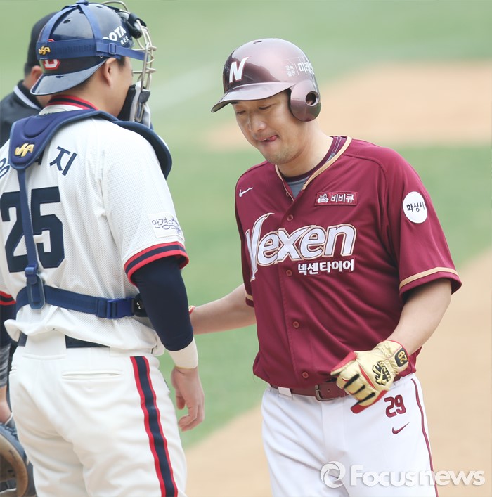 (서울=포커스뉴스) 10일 서울 잠실구장에서 열린 2016 프로야구 넥센-두산 경기 6회초 2사 3루에서 넥센 대니 돈의 중견수 희생플라이때 3루주자 이택근이 홈인하고 있다.