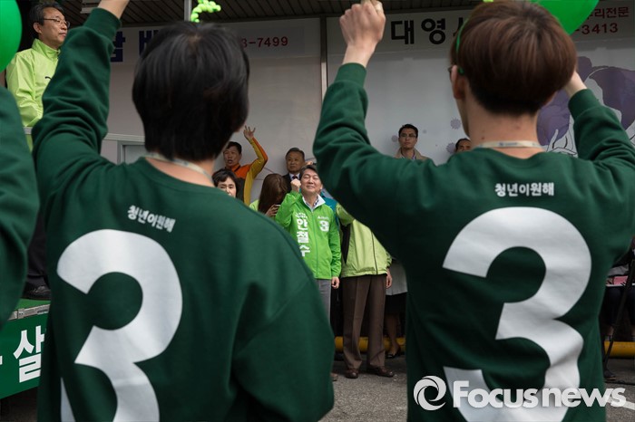 (서울=포커스뉴스) 20대 총선을 3일 앞둔 10일 오후 서울 관악구 관악프라자 인근에서 안철수 국민의당 공동대표가 김성식 관악구갑 후보 지원유세를 하고 있다.