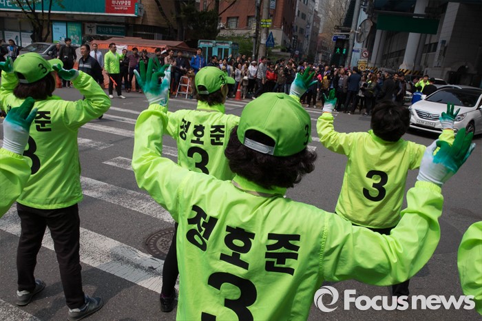 (서울=포커스뉴스) 20대 총선을 3일 앞둔 10일 오후 서울 성동구 옥수역 인근에서 정호준 국민의당 중구성동을 후보측이 선거운동을 하고 있다.