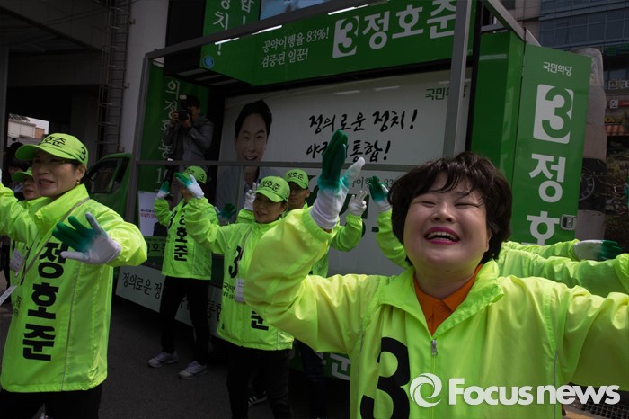 (서울=포커스뉴스) 20대 총선을 3일 앞둔 10일 오후 서울 성동구 옥수역 인근에서 정호준 국민의당 중구성동을 후보측이 선거운동을 하고 있다.