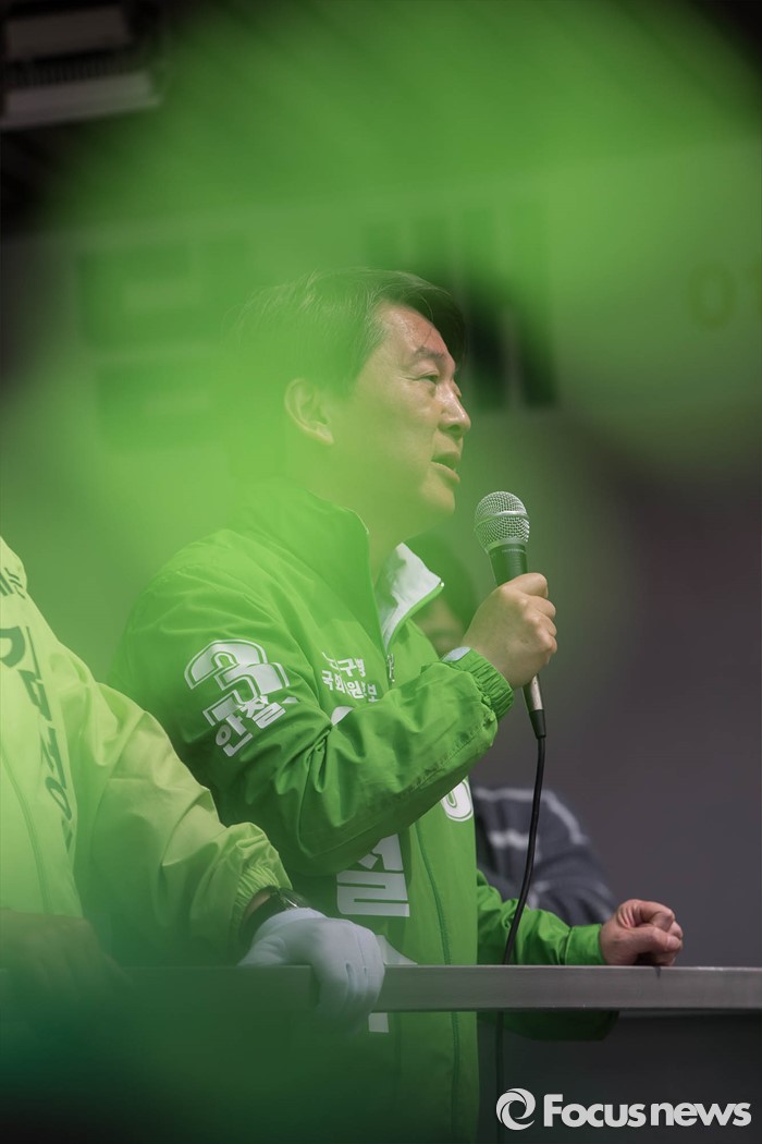 (서울=포커스뉴스) 20대 총선을 3일 앞둔 10일 오후 서울 관악구 관악프라자 인근에서 안철수 국민의당 공동대표가 김성식 관악구갑 후보 지원유세를 하고 있다.
