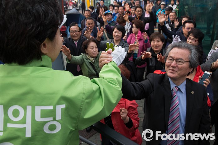 | △ 지지자들 손 잡은 고연호 국민의당 은평구을 후보 |
