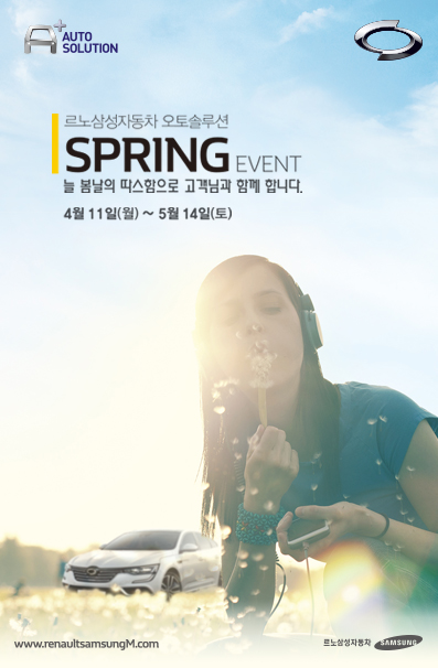 (서울=포커스뉴스) 르노삼성자동차는 '오토솔루션 2016 HAPPY SPRING 봄봄 이벤트'를 진행한다고 11일 밝혔다.