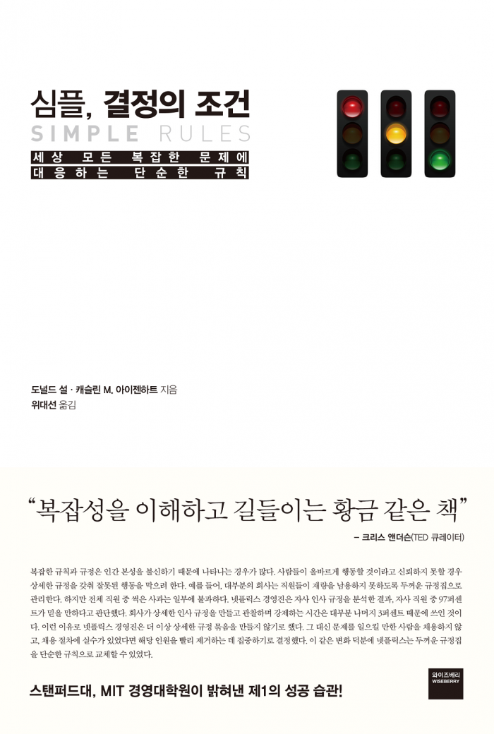 이 책의 공동저자인 도널드 설 MIT 슬론 경영대학원 교수와 캐슬린 M. 아이젠하트 스탠퍼드대 교수는 인터넷의 발달로 시장이 더욱 다양하고 복잡해진 90년대 후반부터 어떤 조직이 성공했는가를 연구하며 가장 큰 성공을 거둔 회사들은 복잡성에 '단순한 규칙(Simple rules)'에 따라 대응했다는 사실을 밝혀냈다.