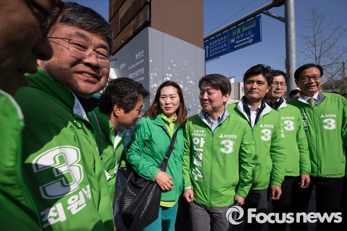 (인천=포커스뉴스) 안철수 국민의당 상임공동대표(가운데)가 11일 오전 인천시 계양구 계양역 앞에서 계양구을 최원식 후보(왼쪽 두번째), 계양구갑 이수봉 후보(오른쪽 세번째) 합동 지원 유세를 하고 있다.