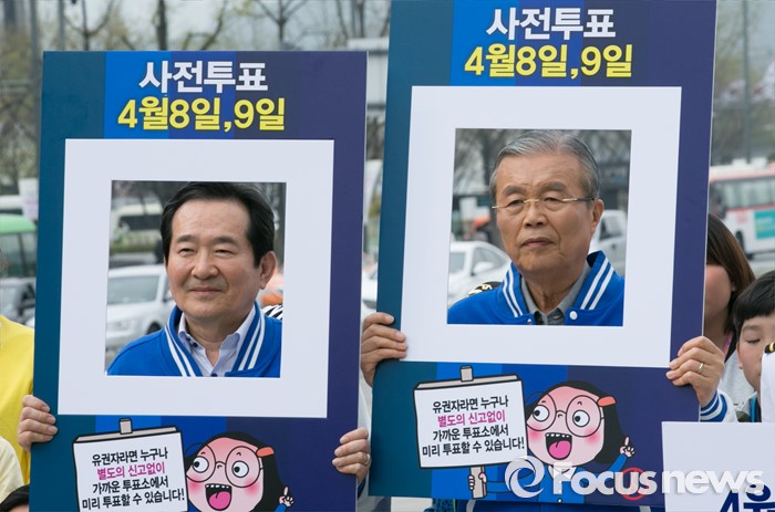 | △ 20대 총선 사전투표 캠페인하는 김종인-정세균 |