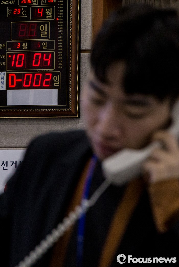 (과천=포커스뉴스) 4.13 총선을 이틀 앞둔 11일 오전 경기 과천 중앙선거관리위원회 내 제20대 국회의원선거상황실 시계에 D-2일이 표시되고 있다.