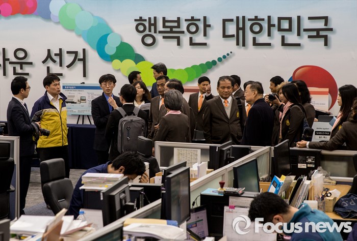 (과천=포커스뉴스) 4.13 총선을 이틀 앞둔 11일 오전 경기 과천 중앙선거관리위원회 내 제20대 국회의원선거상황실을 탐방온 태국선거위원회 관계자들이 한국의 선거과정을 설명받고 있다.