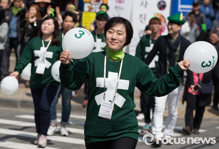 (안산=포커스뉴스) 국민의당 선거 사무원이 11일 오전 안산시 단원구 고잔성당 사거리에서 부좌현 안산시 단원구을 후보 지원유세를 하고 있다.