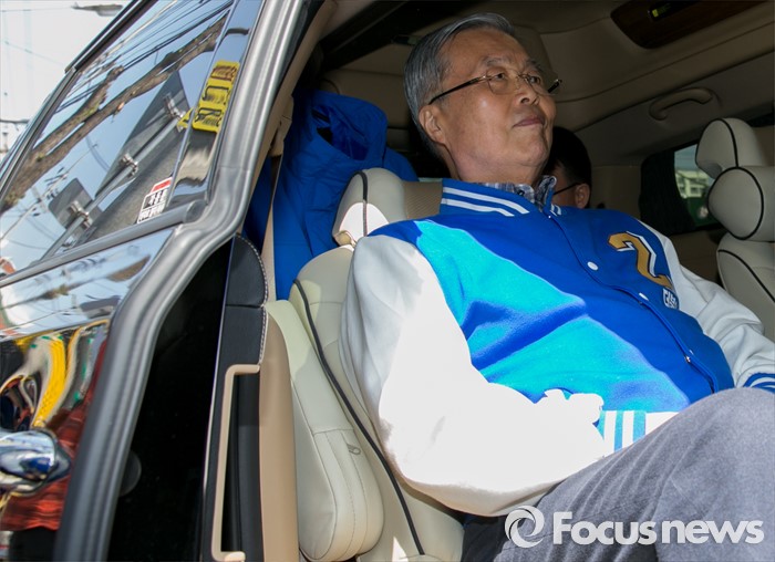 (군포=포커스뉴스) 20대 총선을 이틀 앞둔 11일 오후 경기도 군포 당동우체국 사거리에서 더불어민주당 군포지역 합동유세를 마친 김종인(오른쪽) 비대위 대표 겸 선대위원장이 차량에 올라 이동하고 있다.