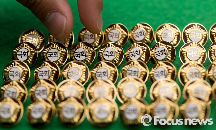 (서울=포커스뉴스) 4.13총선을 이틀 앞둔 11일 오후 서울 여의도 국회에서 20대 국회의원 당선자들이 착용할 배지가 공개되고 있다.