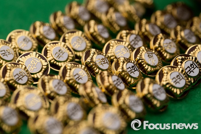 (서울=포커스뉴스) 4.13총선을 이틀 앞둔 11일 오후 서울 여의도 국회에서 20대 국회의원 당선자들이 착용할 배지가 공개되고 있다.
