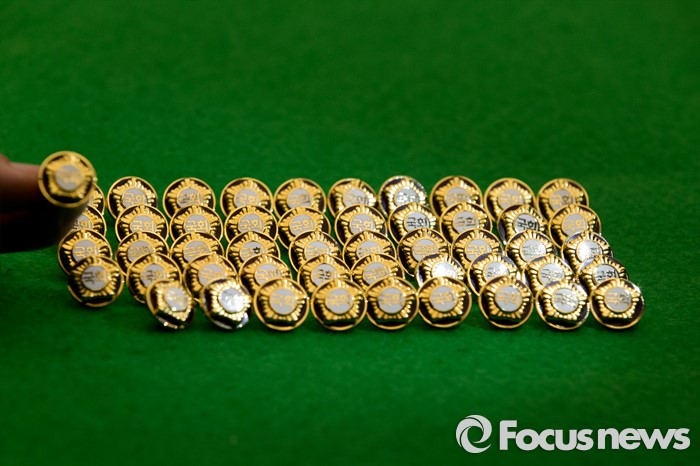 (서울=포커스뉴스) 4.13총선을 이틀 앞둔 11일 오후 서울 여의도 국회에서 20대 국회의원 당선자들이 착용할 배지가 공개되고 있다.