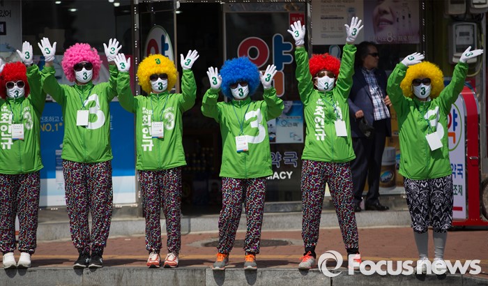 | △ 선거운동원...다양한 컬러의 가발 |