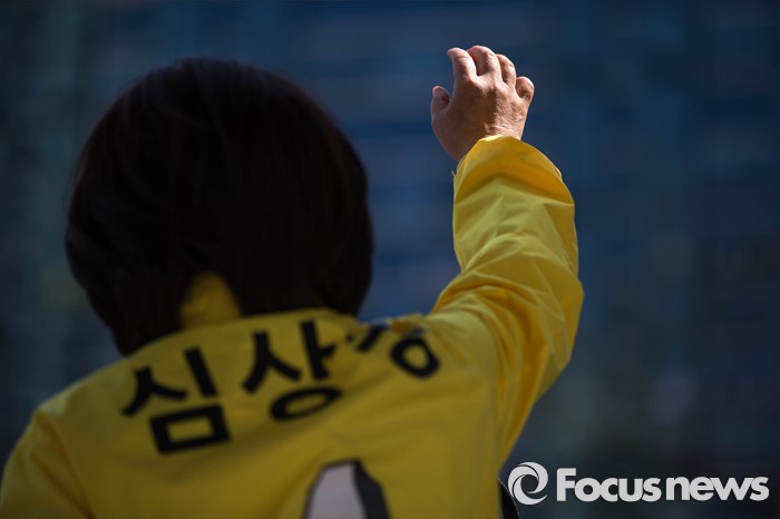 (고양=포커스뉴스) 11일 오후 경기도 고양시 덕양구 세이브존 쇼핑몰 앞에서 심상정 정의당 후보가 시민들을 향해 한 표를 호소하고 있다.
