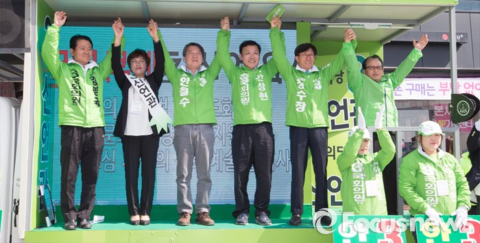 (청주=포커스뉴스) 안철수 국민의당 대표가 11일 오후 충북 청주시 사창사거리에서 20대 국회의원 충북도에 출마한 국민의당 후보의 지지를 호소하고 있다.