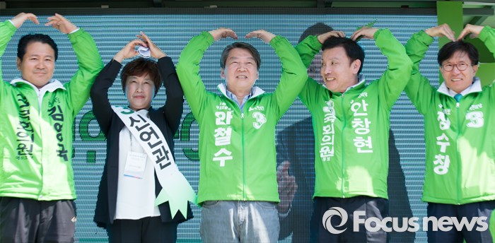 (청주=포커스뉴스) 안철수 국민의당 대표가 11일 오후 충북 청주시 사창사거리에서 20대 국회의원 충북도에 출마한 국민의당 후보의 지지를 호소하며 하트를 보이고 있다.