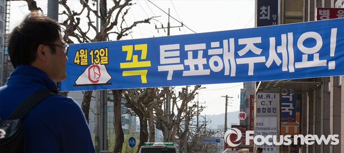 (청주=포커스뉴스) 20대 국회의원 선거를 이틀 앞둔 11일 오후 충북 청주시 복대동에 선거독려 현수막이 걸려져 있다.