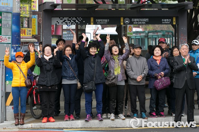 (부산=포커스뉴스) 문재인 전 더불어민주당 대표가 11일 오후 부산시 사상구 가야대로 주례럭키아파트 앞에서 배재정 더불어민주당 사상 후보 지원유세를 하는동안, 시민들이 환호하고 있다.