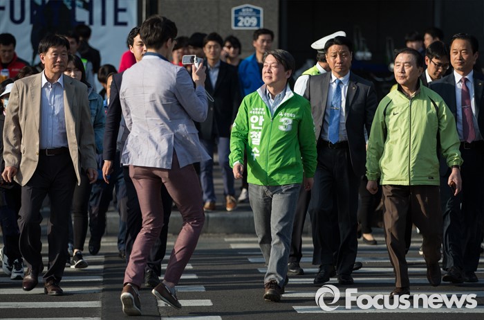 (서울=포커스뉴스) 안철수 국민의당 상임공동대표가 11일 오후 서울 관악구 롯데백화점 앞에서 김성식 관악갑 후보 지원 유세를 하고 있다.