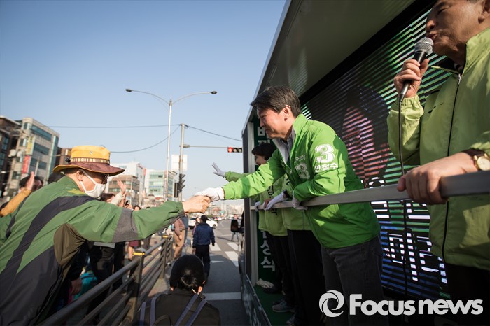 (서울=포커스뉴스) 안철수 국민의당 상임공동대표가 11일 오후 서울 관악구 롯데백화점 앞에서 김성식 관악갑 후보 지원 유세를 하고 있다.